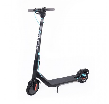 Na rzeczywisty zasięg mają wpływ czynniki takie jak: waga kierowcy, styl jazdy, profil toru, prędkość, opór powietrza i inne.KompaktowośćHulajnogę można łatwo złożyć, poprzez naciśnięcie niebieskiej dźwigni - blokady składania pojazdu.