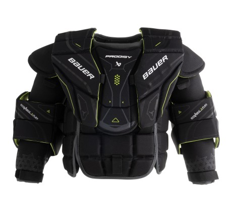 - Kamizelka bramkarska Bauer Prodigy Dziecięce to doskonały wybór dla najmłodszych zawodników, którzy potrzebują niezawodnej ochrony i komfortu, aby z pełnym zaangażowaniem i pewnością siebie bronić bramki.