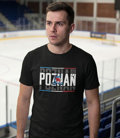 - Stylowy napis „Poznań” z logo PTH Koziołki Poznań na froncie koszulki.