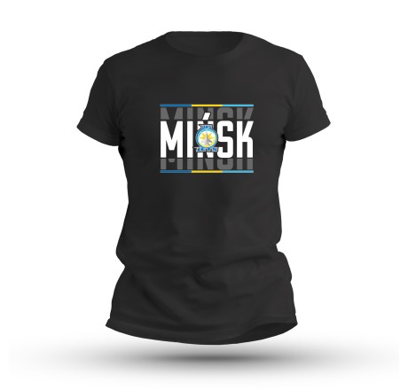 - Czarna koszulka z dynamicznym nadrukiem „MIŃSK” oraz herbem HKS Jets w centralnej części.