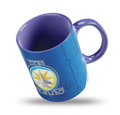- Ceramiczny kubek w intensywnym, niebieskim kolorze z klubowym herbem HKS JETS to idealny wybór dla każdego kibica.