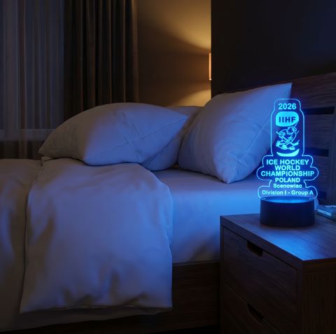 - Podświetlana grafika z oficjalnym logo IIHF oraz nazwą turnieju tworzy efektowną dekorację, idealną do pokoju kibica, biura lub jako element kolekcji.