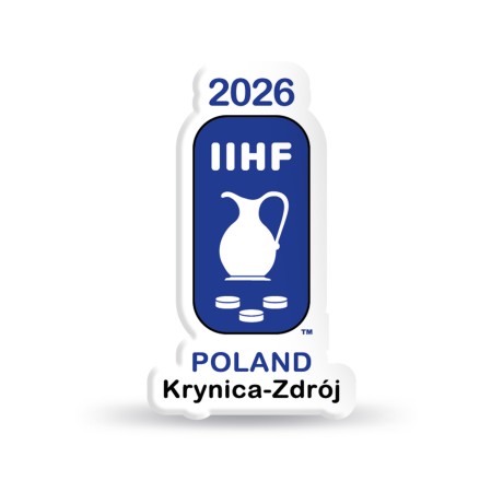 - Logo IIHF oraz oznaczenie wydarzenia Poland – Krynica-Zdrój.