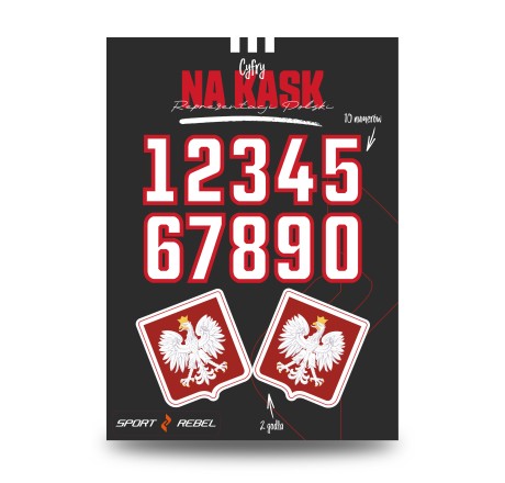 - Zestaw naklejek na kask inspirowany reprezentacją Polski, przygotowany w dwóch wariantach graficznych – wzór A oraz wzór B.