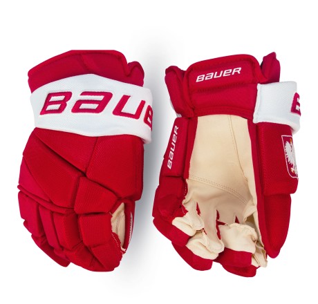 - Rękawice hokejowe Bauer Vapor Pro Sr zostały zaprojektowane w barwach narodowych z godłem Polski, co czyni je wyjątkowym wyborem dla zawodników oraz fanów reprezentacji Polski.