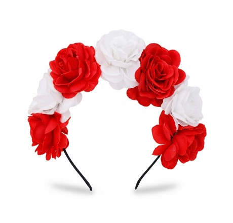 - Wykonany z dekoracyjnych kwiatów w biało-czerwonych barwach, przyciąga uwagę i pozwala wyróżnić się w tłumie.